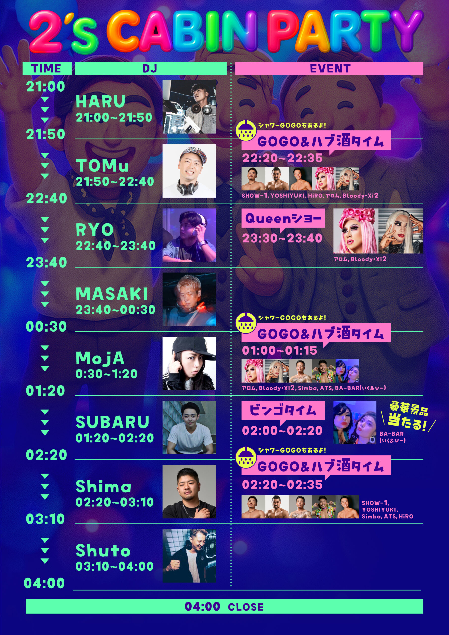 DJやGOGO、パフォーマーとして出演します。
