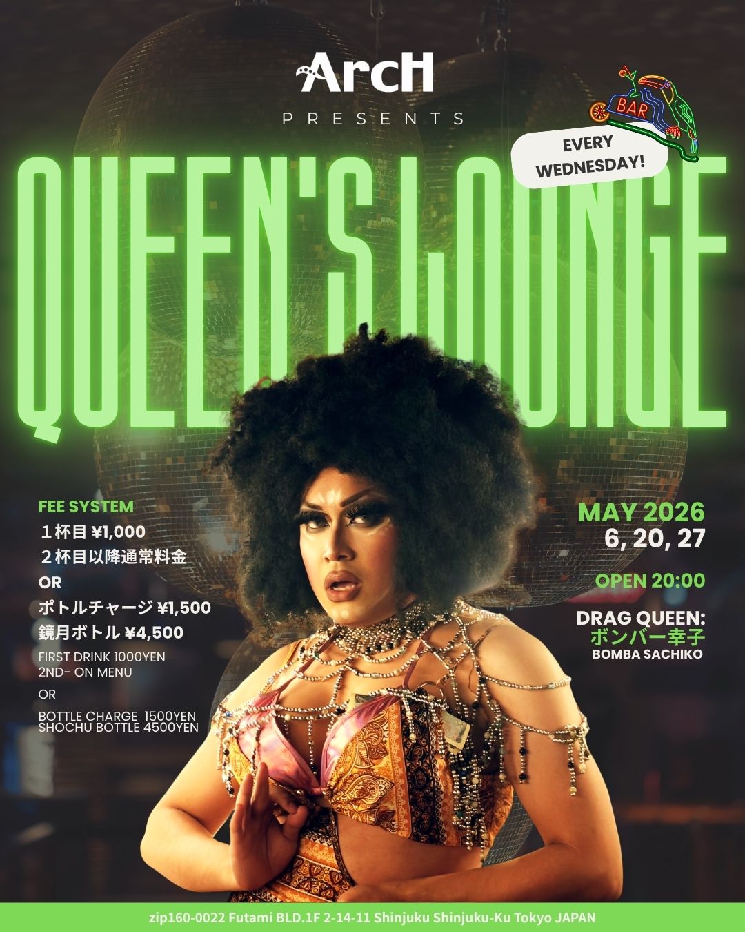 DRAG QUEENのホステスが、妖艶かつ賑やかにおもてなし!