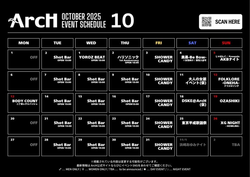 ArcH 2025年10月イベントカレンダーを公開しました!