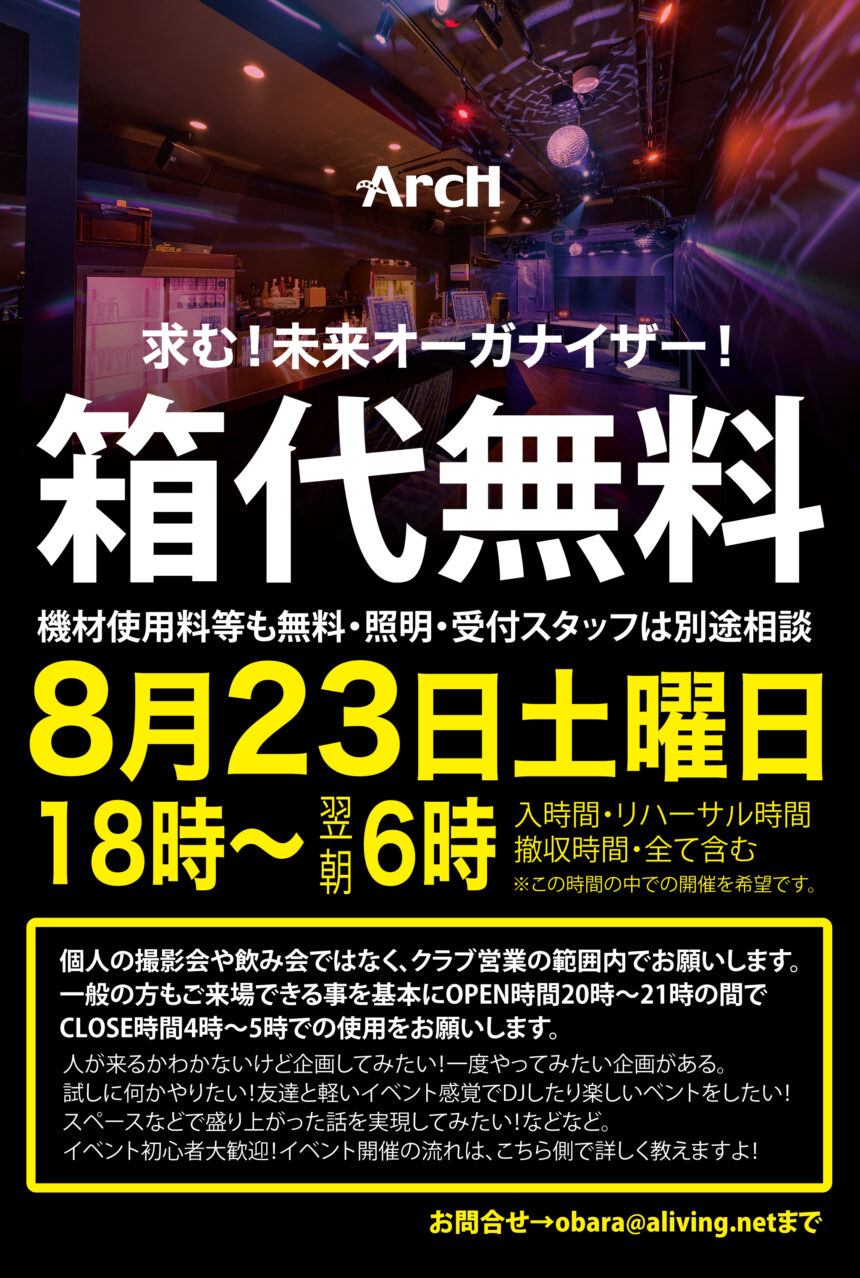 2025年8月23日(土)のArcHスケジュールに急遽空き日が生じました。